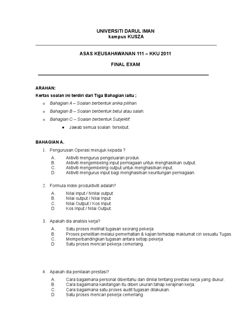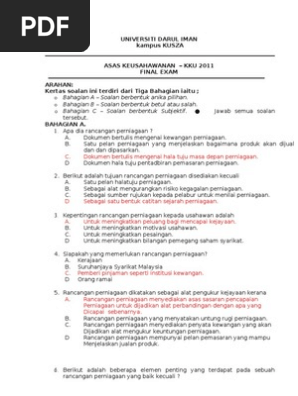 Contoh Soalan Asas Pembudayaan Keusahawanan Pdf
